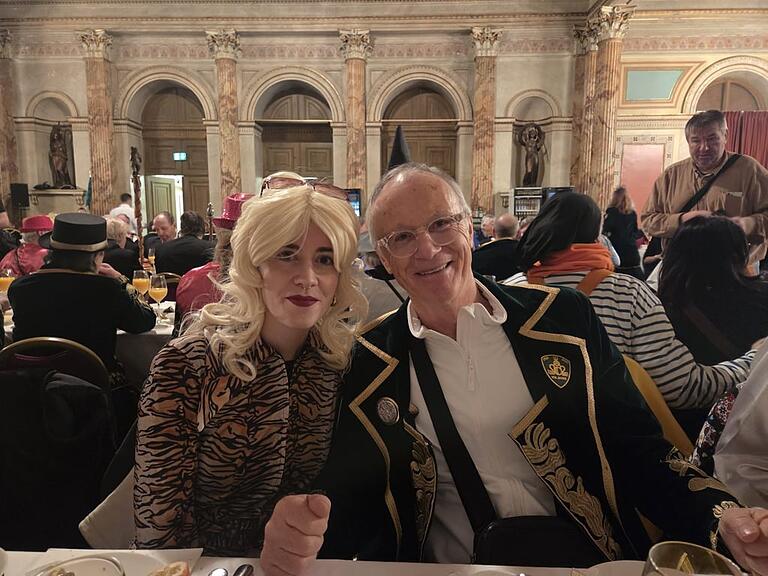 Franz Heini (Zunftmeister 2009) mit seiner Tochter. Ihm wünschen wir einen rüüdigen 70. Geburtstag. Mitte Februar Geburtstag zu habe sei schon etwas Schönes, sagt er. Kein Wunder: Im Saal wurde ihm ein Ständchen gesungen.