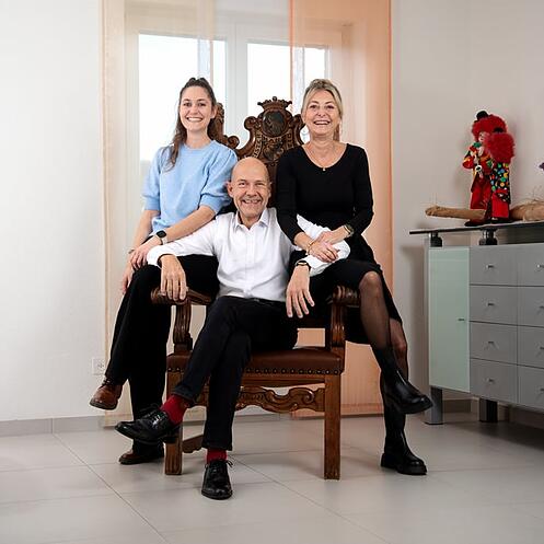 Familie Brunner aus Luzern mit ihrem Sujet «Goldrüschli»