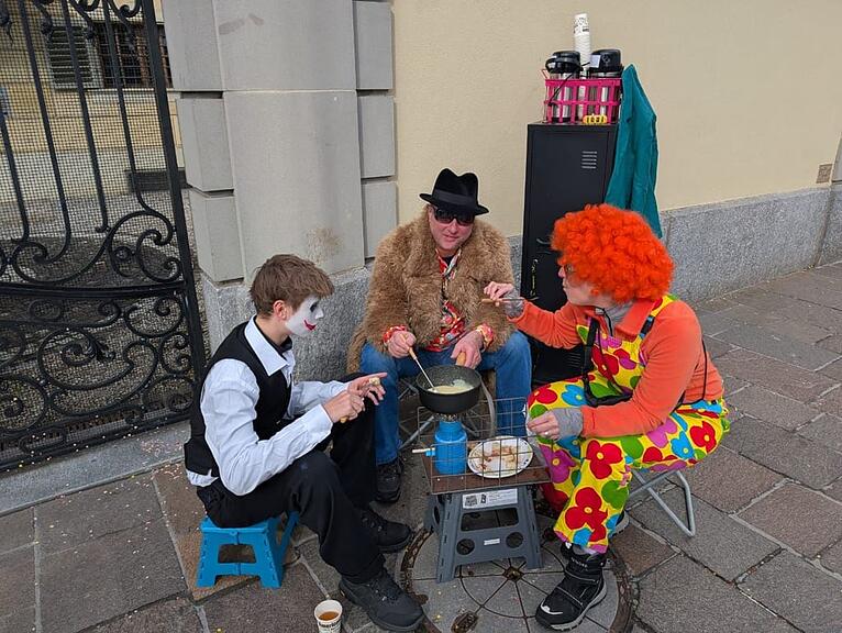Wer hätte das am Morgen früh gedacht?! Die Sonne scheint, und mit dem Wetterumschwung füllt sich der Mühleplatz langsam. Viele holen sich hier noch eine Stärkung vor dem Umzug.