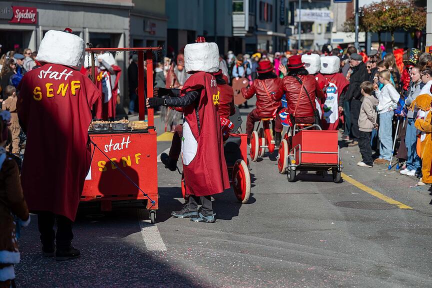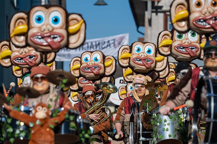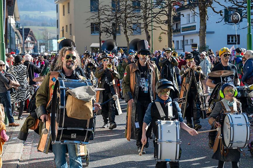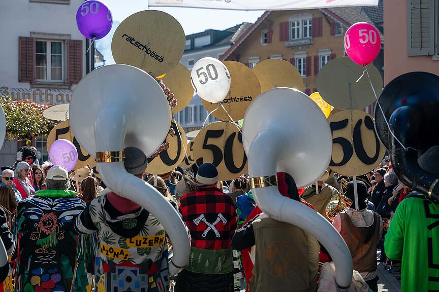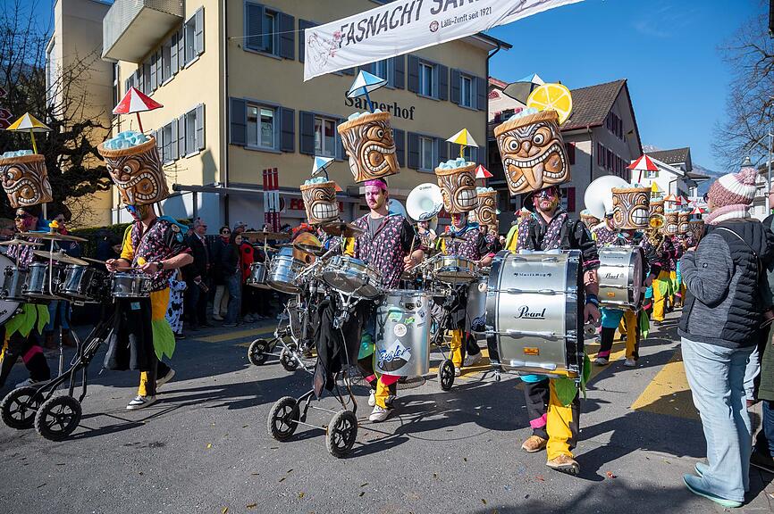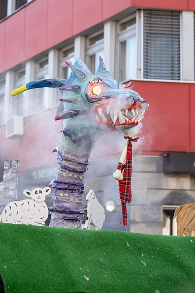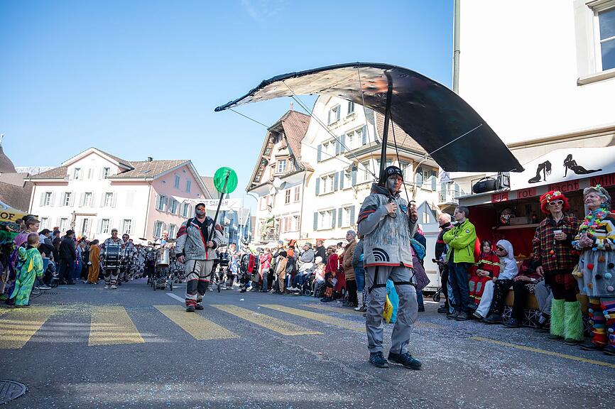Petrus scheint ein Fan der Lälli-Zunft zu sein. Dem Motto des gestrigen Umzugs hat er sein blaues Firmament beigesteuert.