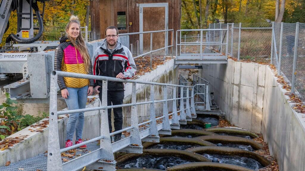 Für wenige Sekunden sind zwei Fische zu sehen, dann spüren sie die Anwesenheit der neugierigen Besuchenden, die sich unmittelbar neben dem Flusslauf an der Sure versammelt haben. Die Flussbarben ziehen sich sofort zurück in die Anlage der neuen Mäanderfischtreppe beim Kleinwasserkraftwerk Sursee. Von dort sind sie gekommen. Von einem Wasserbecken zum anderen gewandert. Oder mäandriert. Was so viel heisst wie schlängeln, ein Mäander bedeutet Flussschlinge. Genau das soll die Anlage mit mehreren runden, kleinen Becken entlang der Sure simulieren. Ohne die Treppe könnten sie das Kraftwerk flussaufwärts nicht überwinden.