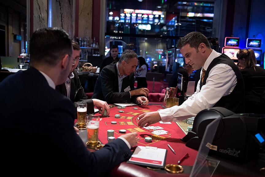 Die Jetons sind auf dem roten Filz verteilt. Es liegen üppige Einsätze. Beinahe jede Zahl ist bedeckt. Die Kugel springt auf die 23. Dealer Dan Ebert überlegt kurz, schiebt dann der Person, die auf die 23 gesetzt hatte, einen Stapel Jetons hin. Auch die beiden anderen Spieler haben einen Gewinn erzielt. Wenn auch eine deutlich kleineren – sie haben auf Rot oder Ungerade gesetzt. Für Laien geht dieser Vorgang zu schnell. Spieler und Dealer aber wissen, wer wie viel gewinnt oder verliert.