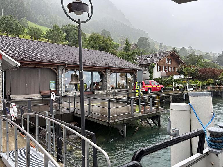 Von Kehrsiten aus fahren momentan keine Schiffe. Dort ist ein Einsatzwagen der Stansstader Feuerwehr stationiert.