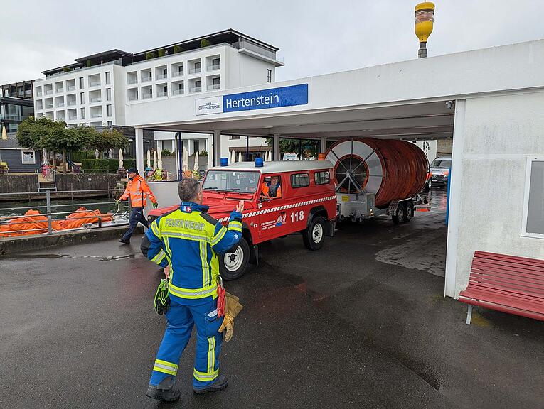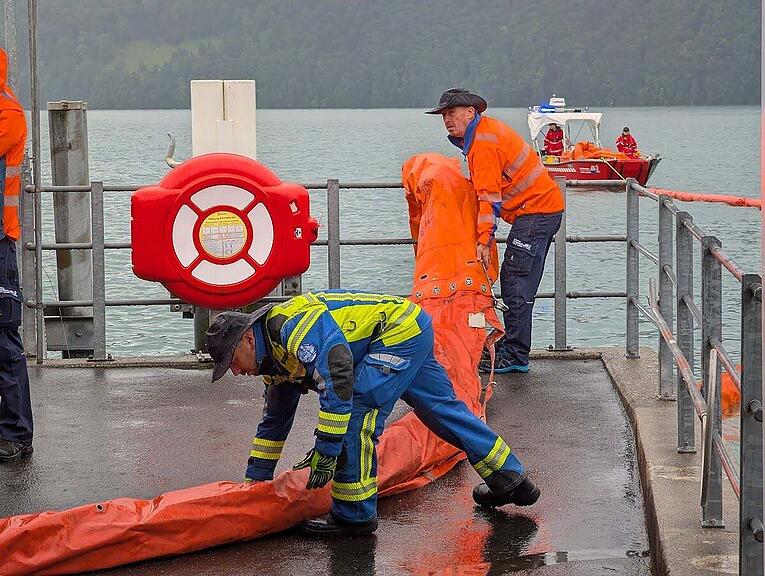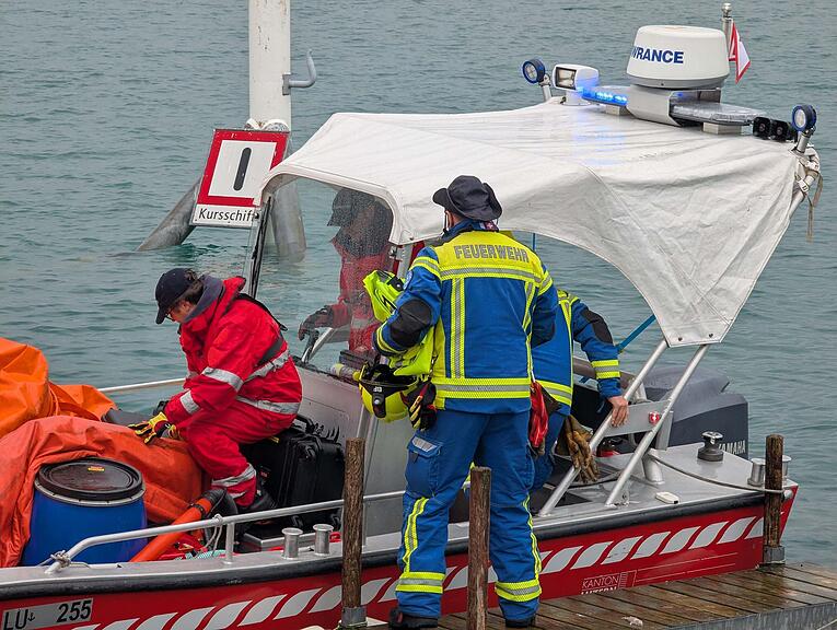 Die Einsatzkräfte in Hertenstein (Weggis).