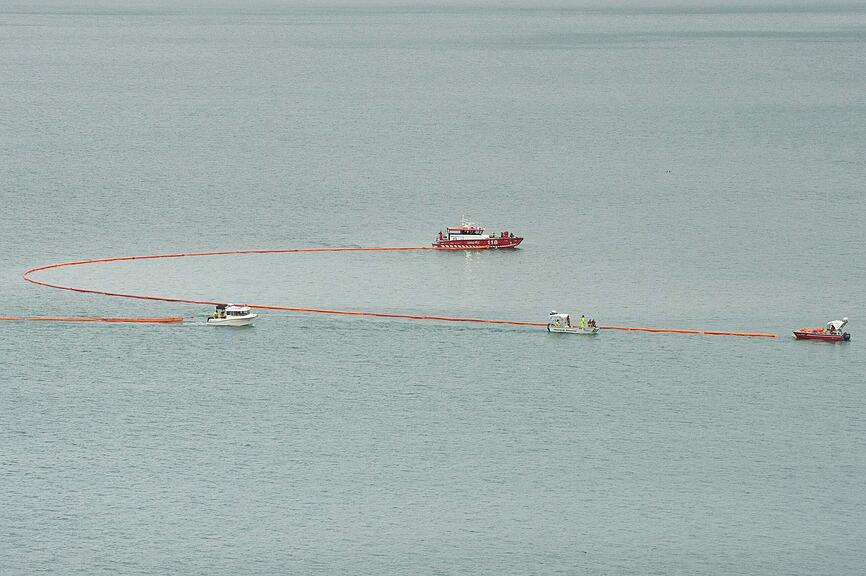 Die Ölsperre wird bereit gemacht.