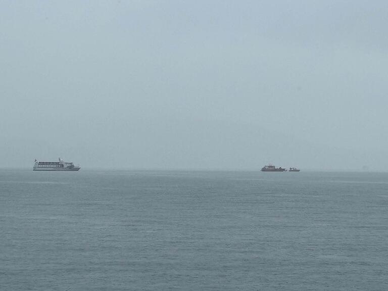 Links vom grossen Schiff sieht es so aus, als ob Teile im Wasser schwimmen.