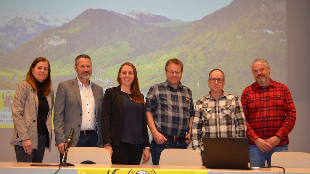Der Gemeinderat, von links: Flavia Regli, Jvo Eicher, Rebekka Zulian, Reto von Büren, Alois Mathis und Gemeindeschreiber Lars Vontobel.