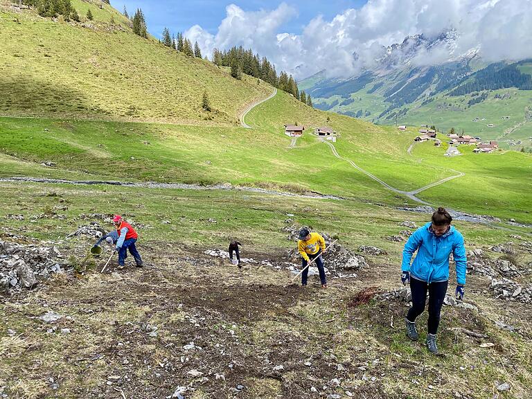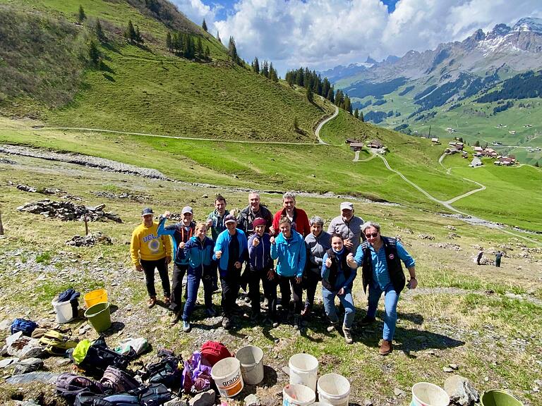 Auch in diesem Jahr leistete eine Gruppe von Dätwyler Mitarbeitenden Frondienst auf der Alp Wannelen. Bei trockenem Wetter und angenehmen Temperaturen packten sie beim sogenannten «Scheenä» mit an und befreiten die Alpweiden von Steinen, die eine Lawine hinterlassen hatte. Der freiwillige Einsatz im steilen Hang wurde von den Älplern sehr geschätzt und mit einem «Zabigplättli» verdankt.