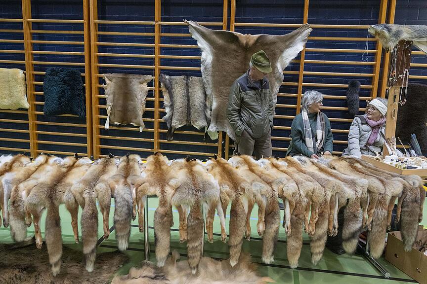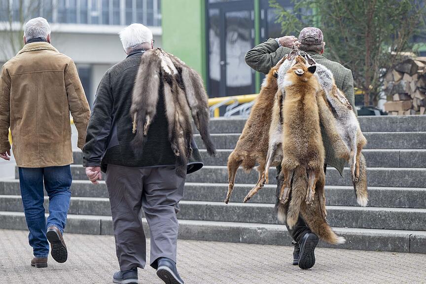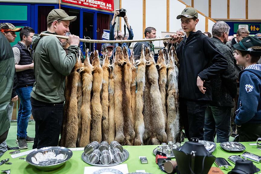 2024 war ein gutes Jahr für die Revierjagd Luzern. Das zeigt sich in der Jagdstatistik – 2568 erlegte Füchse, 5232 Rehe – und bei der Auffuhr zum Fäälimärt in Sursee am Dienstag. 2023 wurden 183, im Jahr zuvor 246 Felle aufgefahren. Und nun 279 Füchse, zehn Dachse, eine Gams, 47 Steinmarder, sechzehn Baummarder und ein Rentier. Rentier? «Da hat sich wohl jemand einen Jux erlaubt», meint Thomas Emmenegger, Präsident der Fäälimärtkommission.