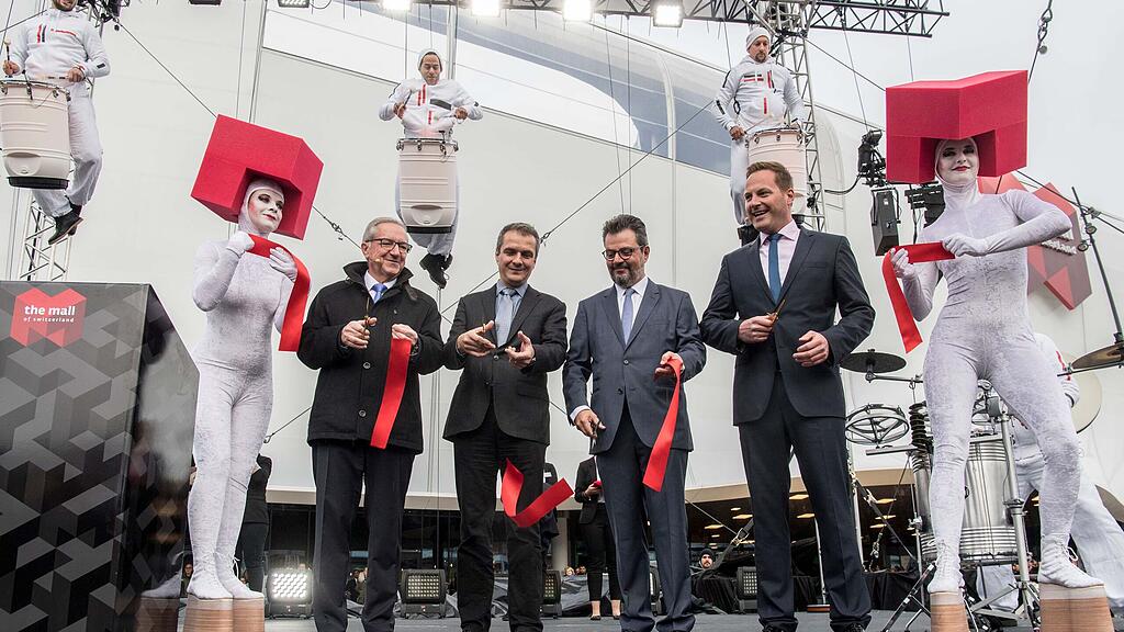 Mit einem Riesenspektakel samt Pyro und Artisten wurde die Mall of Switzerland am 8. November 2017 eröffnet. Sogar Regierungsrat Robert Küng war beim Durchschneiden des roten Bandes zugegen.