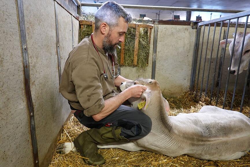 In der Nähe von Romont ist Marc Butty in einer Tierarztfamilie mit drei Geschwistern aufgewachsen. Nach einem Sprachschulaufenthalt in England entschied er sich, auf der Insel die Matura abzuschliessen und Kriminalistik zu studieren. Danach folgte ein zweijähriger Einsatz als Knecht auf einem nordirischen Bauernhof. Von 2011 bis 2016 studierte er Veterinärmedizin an der Vetsuisse-Fakultät der Universität Bern. Mit seiner Masterarbeit zur Moderhinke erlangte er seinen Abschluss. Darauf arbeitete er vier Jahre im Tierspital Bern. 2021 wurde er auf eine freie Tierarztstelle in Altdorf aufmerksam. «Den Kanton Uri kannte ich noch nicht, aber die Braunviehrasse hatte es mir angetan», schmunzelt er. Wohl war ihm anfänglich das «Ürner Tytsch» fremd, doch er überwand mit frohem Gemüt und der Unterstützung der Bauern die Sprachbarriere. 2024 übernahm er von Dr. Thomas Stadler die Geschäftsleitung der Gross- und Nutztierpraxis Uri AG. Sein Kollege ist seither Ansprechpartner für die Kleintiermedizin.