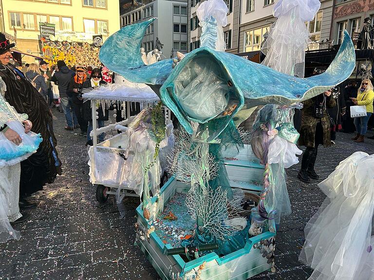 Fasnächtliche routiniert ist die Wagenbauergruppe Die «Kursivierte» definitiv. Das ist bereits ihre elfte Fasnacht. Im diesem Jahr sind sie als Nachtwächter unterwegs. Die detailreichen Grende liessen sie extra von einem Künstler machen. Wow!