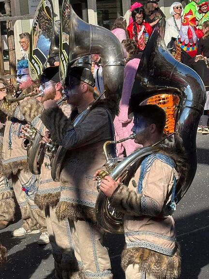 Grende trägt man nicht nur z Äbike - hier die Speuzer Schränzer aus Erlinsbach SO, pardon «Ärlischbach». Damit geht der Umzug in Ebikon zu Ende.