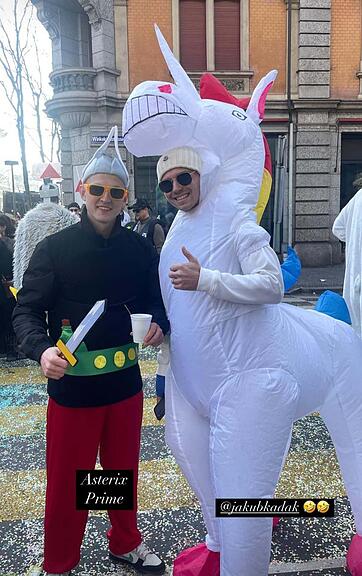 Wer ist denn hier an der Fasnacht? Ja richtig, FCL-Profis! Andrejs Ciganiks als Asterix und Jakub Kadák als Einhorn vergnügen sich mitten im Getümmel, wie auf dem Instagram-Profil von Ciganiks zu sehen ist.