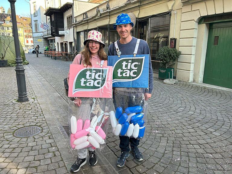 Auch an der Fasnacht braucht man zwischendurch etwas für den frischen Atem. Dieses Paar aus Hellbühl liefert den Frischekick für den Atem gleich in Übergrösse.