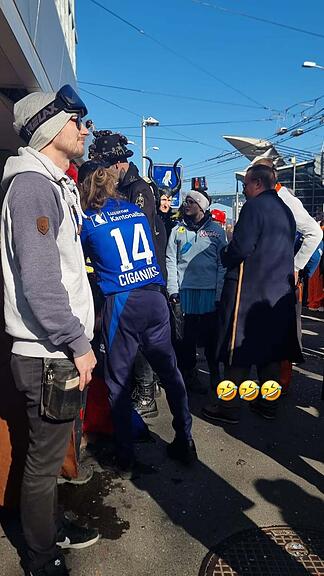 Ein weiteres Foto, das der lettische Verteidiger im Dienste des FC Luzern auf Instagram hochgeladen hat, zeigt eine Szene, die unsereins wohl so nicht erleben wird. Offenbar amüsiert sich Ciganiks prächtig darüber, sich selbst an der Fasnacht anzutreffen. Ob er sich angesprochen hat? Wir wissen es leider nicht, lustig ist es auf jeden Fall.