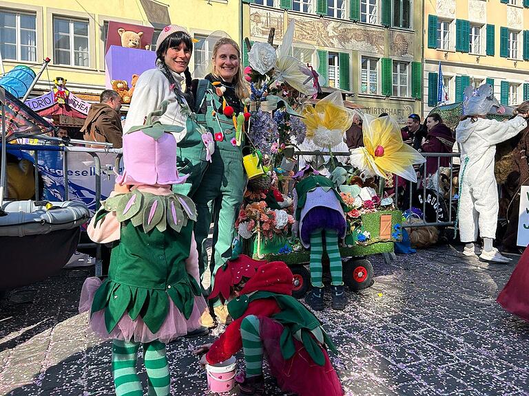 Der Frühling naht! Diese beiden Luzernerinnen haben definitiv einen grünen Dauen. Ihre Tulpen, Osterglocken und Krokus blühen bereits. Drei intensive Tage investierten sie in die Kostüme und den blumenreichen Wagen.
