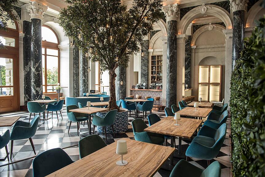 So legt das Unternehmen etwa Wert darauf, dass Tischsets und Menukarten im Hause selber gestaltet werden und Möbel und Sonnenschirme keine Werbung von Lieferanten tragen. Hier im Bild: Das Interieur des Hotels Anker in Luzern: