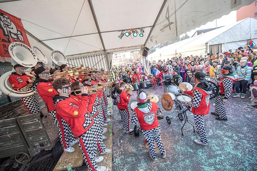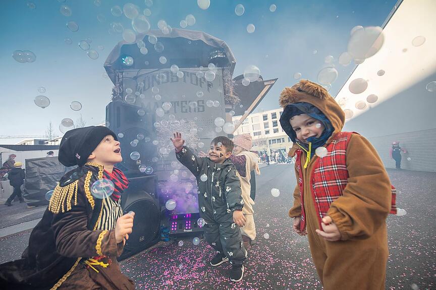 Ebenso wenig wie einen Grend. «Hauptsache du hast die Fasnacht im Grind», erklärte ein Motteri. Das Monsterkonzert eröffneten die Schädubrommer mit einem Eminem-Stück. Sie hatten die Aufmerksamkeit der Grossen. Und die Kleinsten vergnügten sich vor allem mit Seifenblasen. Die Stimmung am Montag war friedlich und fröhlich. Ein Fasnächtler sagte: «Endlich wieder Fasnacht! Wir mussten so lange warten und jetzt ist es so weit. Wir freuen uns bis in den Morgen und vergessen alle Sorgen.»