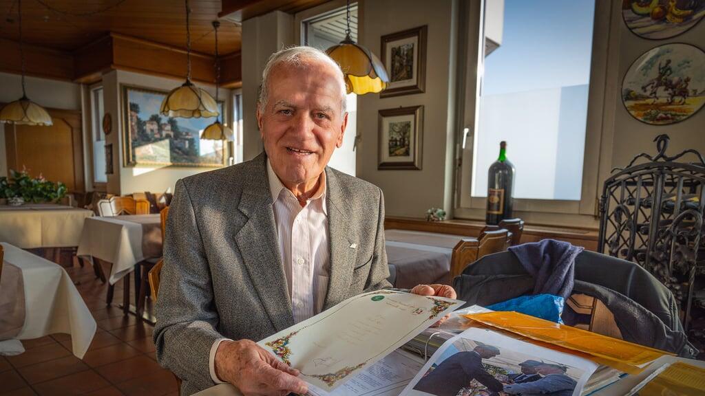 Dicke Ordner voller Zeitungsartikel, Urkunden und Briefe: Giulio Rossi hat sein Leben perfekt dokumentiert.