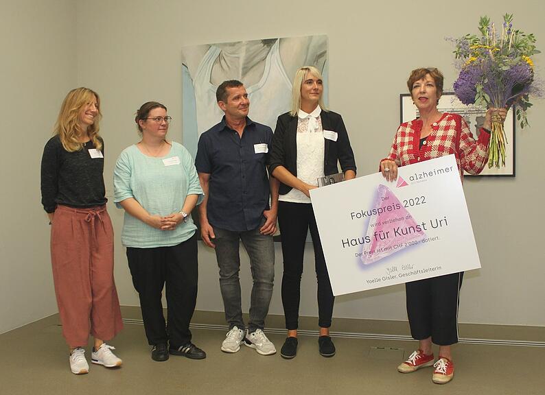 Feierlicher Moment am Donnerstagabend im Haus für Kunst Uri. Direktorin Barbara Zürcher durfte den Fokuspreis 2022 von Alzheimer Uri/Schwyz entgegennehmen. Damit wird das Engagement des Hauses für Menschen mit Demenz und deren Angehörigen belohnt. Der Preis ist mit 2000 Franken dotiert.