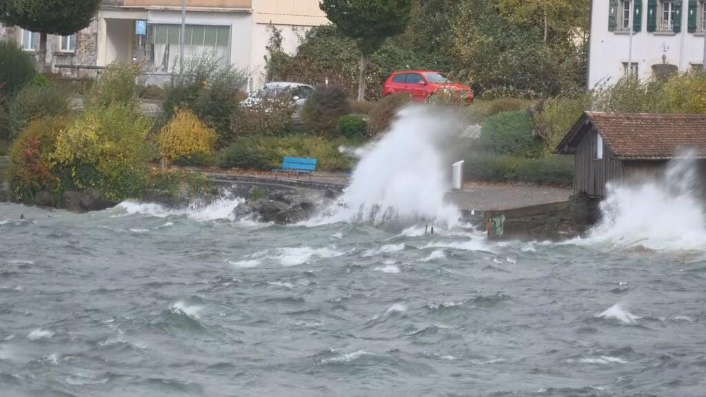 Dieses Video zeigt eindrücklich, wie stark der Sturm beim Zugersee in Arth die Welle aufpeitscht.