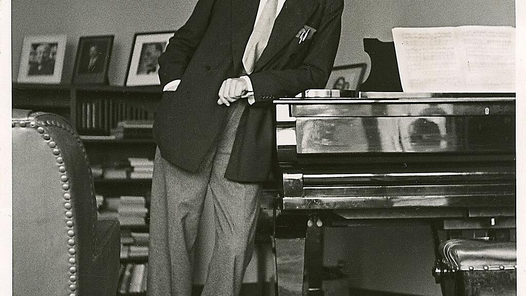Rachmaninow 1939 im Musiksalon der Villa Senar vor seinem spezialangefertigten Flügel. (Bild: Serge Rachmaninoff Foundation)