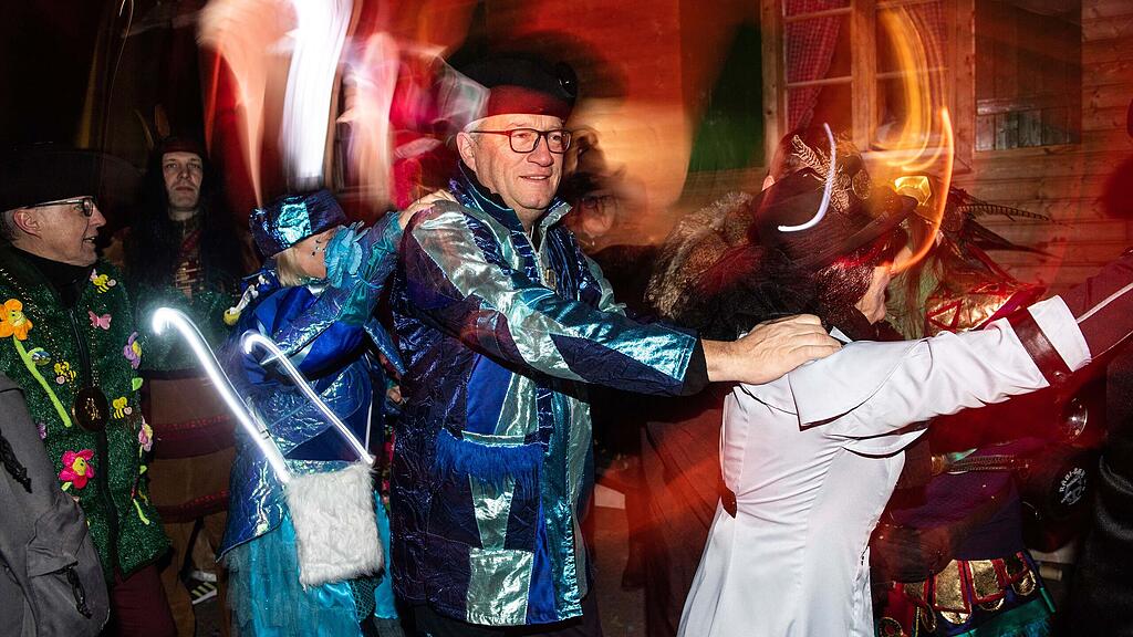 Die Fasnachtsbegeisterten machen eine Polonaise.