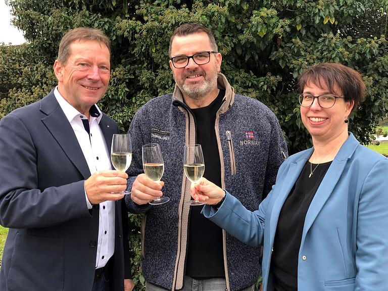 Gemeindepräsident Alfons Knüsel (links) und Gemeindeschreiberin Claudia Lustenberger gratulieren dem gewählten Gemeinderat Franz Bucher zur Wahl.
