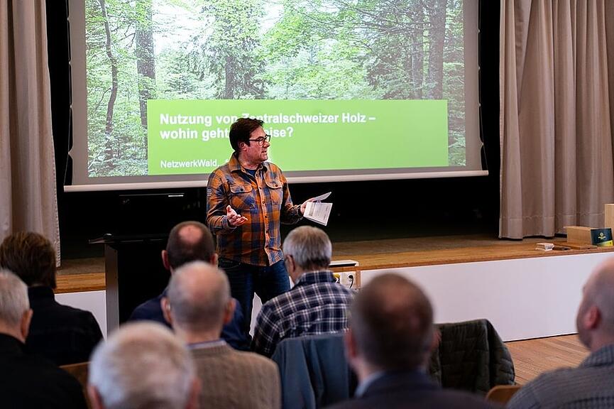Auf lokaler respektive kantonaler Ebene erhielten hernach Toni Niederberger und Ueli Wallimann das Wort. Toni Niederberger, Nidwaldner Landrat und Präsident des Vereins «Nidwaldner Holz», präsentierte der Versammlung die Ziele und Absichten des im November 2025 gegründeten Vereins. Grundsätzlich gehe es ihm und seinen Mitstreitern darum, in der Nidwaldner Bevölkerung das Bewusstsein für hiesiges Holz wieder zu stärken. Fast scheint es, als hätte die Bevölkerung nur auf «Nidwaldner Holz» gewartet: Obwohl noch kein halbes Jahr alt, zählt der Verein bereits über 140 Mitglieder. Toni Niederberger freut sich zwar über diesen Erfolg, weiss aber auch, dass ihm und seinen Mitstreitern noch ein langer Weg bevorsteht: «Anfangen ist nicht schwer, durchhalten schon.»