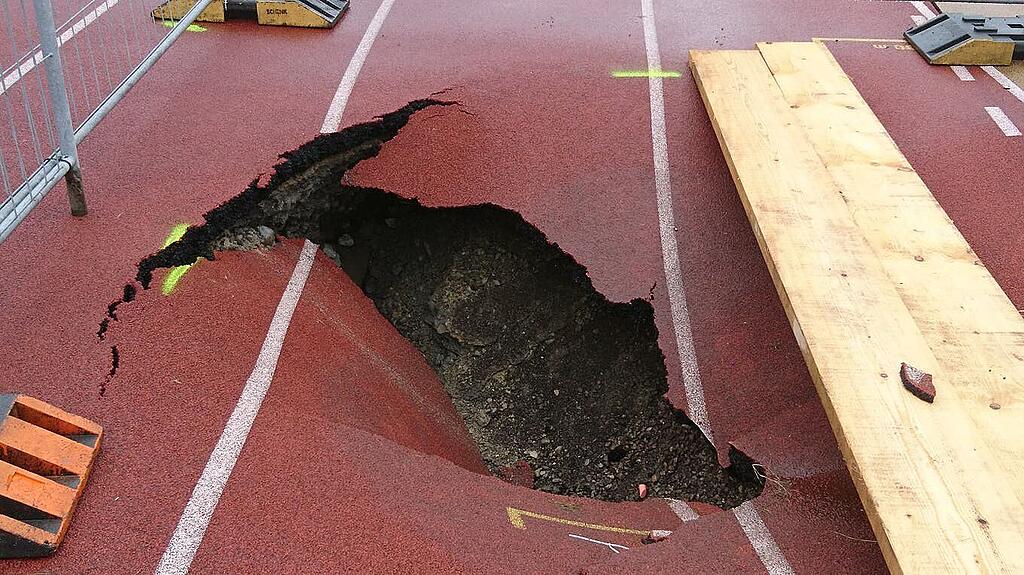 Laut Immobilienvorsteher Jörg Stalder wurde bei den Rohrstossarbeiten Bentonit verwendet. Dieses Füllmaterial wird als Stützflüssigkeit benötigt, um den gebohrten Hohlraum auszufüllen, bevor das eigentliche Rohr verlegt wird. An der neuralgischen Stelle unter der Leichtathletikanlage hat sich der Bentonit aus noch ungeklärten Gründen teils im Baugrund verselbstständigt. Worauf es zu den Absenkungen und Hebungen kam. Stalder: