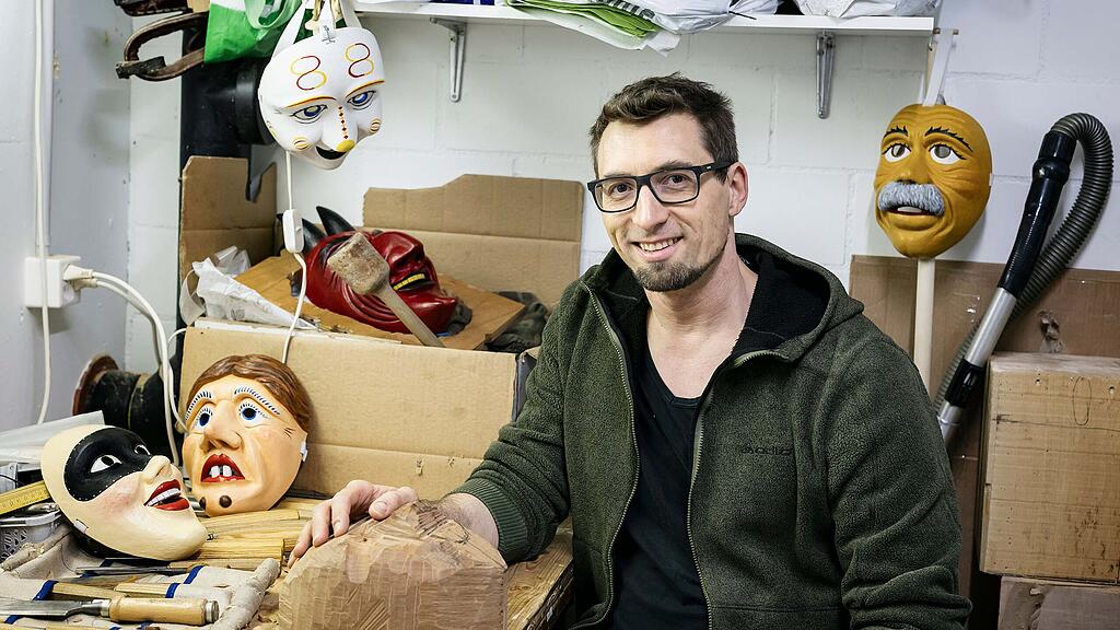 Knapp 2 auf 2 Meter misst die Werkstatt von Chris Meijer. Er hat sie sich im Keller seiner Eltern in Unterägeri eingerichtet. Viel mehr als eine Werkbank, eine Schleifmaschine und eine ganze Palette an Schnitzmessern umfasst sie auf den ersten Blick nicht. «Hier stehe ich stundenlang und vergesse dabei die Zeit», sagt er. Seit rund sieben Jahren schnitzt er Holzmasken. Voller Leidenschaft und mit einnehmender Begeisterung.