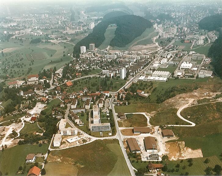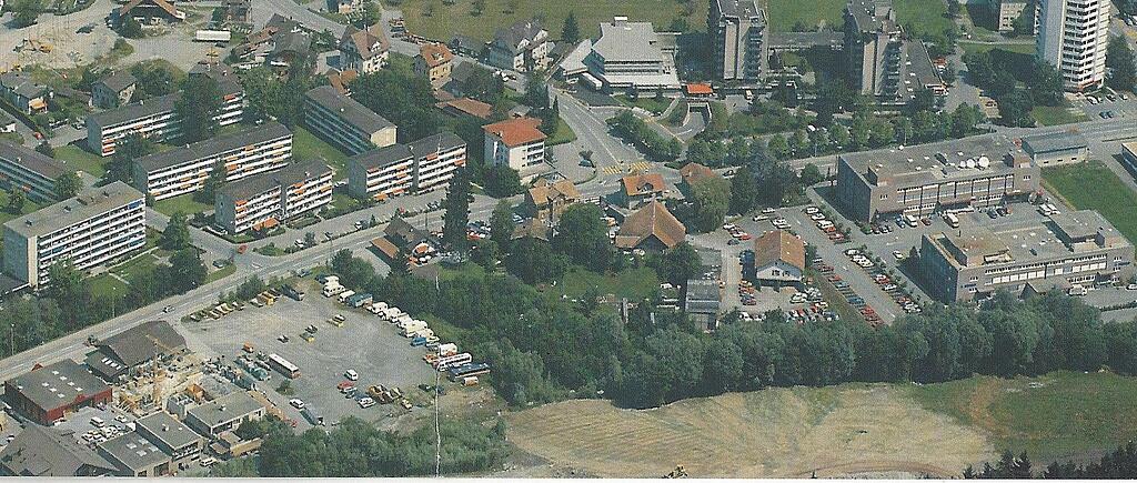Gemäss Krieger wurde der Abfall der Stadt Luzern seit 1958/59 auf der Deponie Gasshof/Bergweid abgelagert. Die Bergweid hinter der Deponie war früher ein Bauernhof. Auf dem Bild von 1966 ganz rechts erkennbar ist ein Gebäude, welches das Stadtbild in Littau heute noch prägt, nämlich das 1961 erstellte Hochhaus Luzernerstrasse 150 des Architekten Joseph Gasser. Rechts davor steht das frühere Schützenhaus (2009 abgerissen). «Der letzte 300-Meter-Schuss wurde hier am 28. Oktober 1978 abgefeuert», erzählt Krieger. Heute befindet sich dort die Bushaltestelle Schützenhaus. «Deshalb deren Name», sagt Krieger, «obwohl nichts mehr an das Schützenhaus erinnert.»
