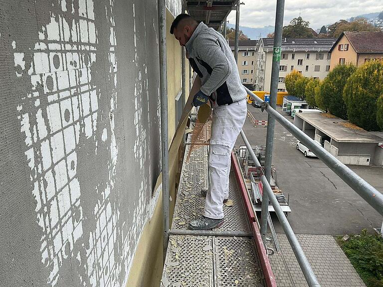 Beim Dämmstoff handelt es sich in diesem Fall um EPS-Hartschaum, der auch unter dem Markennamen Styropor bekannt ist. «Die Verbrennung dieser Dämmplatten, die hauptsächlich aus Erdöl bestehen, verursacht grosse CO 2 -Emissionen», so Schelbert. Um diese zu vermeiden, sammelt das Gipsergeschäft De Donno Mario AG, das die Sanierung durchführt, das alte Styropor ein.