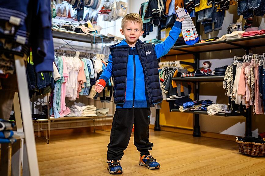Der jüngste Gast im «Rägäbogä» ist der vierjährige Lio Mattmann. Zusammen mit seiner Mutter kauft er sich Socken. Aber nicht irgendwelche, sondern solche mit Gummistoppern. Warum? Damit er nicht wieder ausrutsche. Das ist ihm kürzlich passiert und dabei hat der Bub sich den Arm gebrochen. «Es tut aber nicht mehr weh», sagt er und zeigt stolz seinen Gips. Stolz ist er auch auf die neuen Socken. Das seien «Dädi-Socken». Denn neben dem Superman ist zu lesen: «My Dad is my Hero.»
