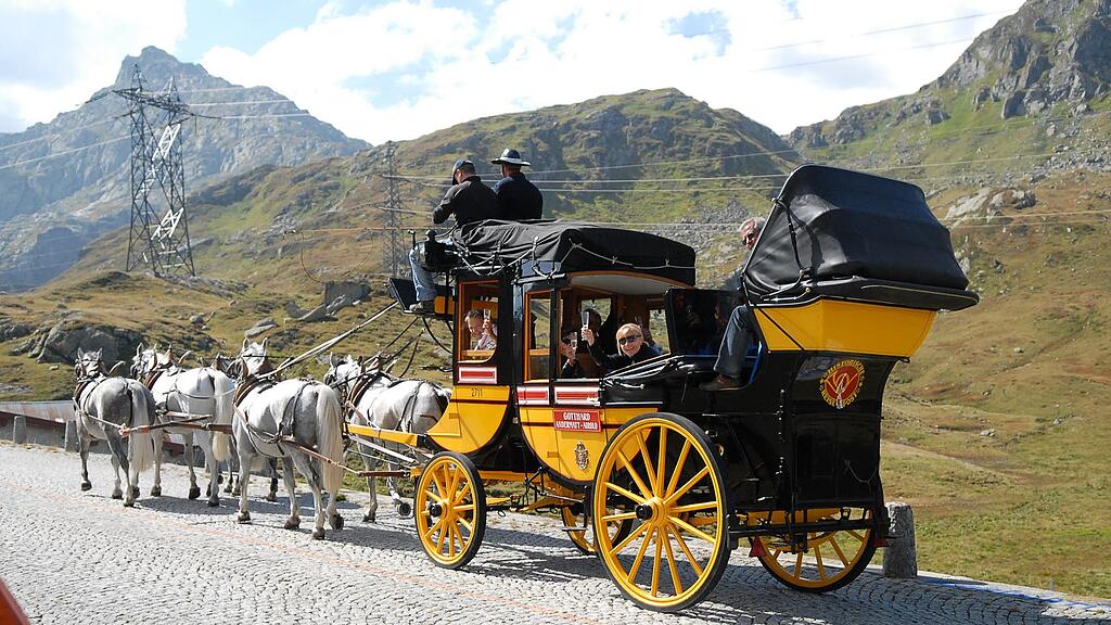 Urschner fahren mit der Gotthard-Postkutsche auf