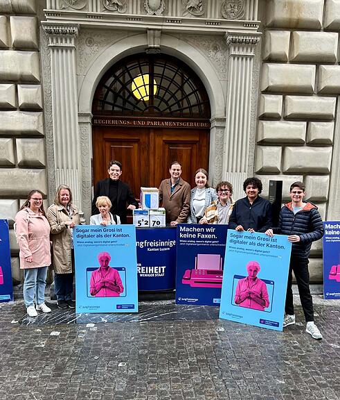 Die Jungfreisinnigegen haben am Mittwochnachmittag ihre Digitalisierungsinitiative eingereicht. Die Partei sammelte innert Jahresfrist 5270 Unterschriften.