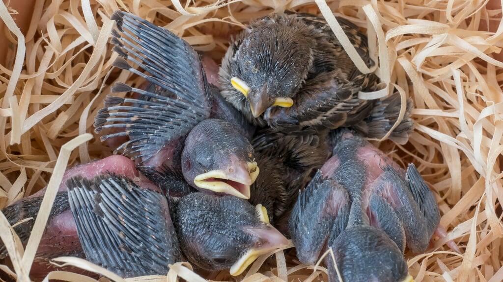 Diese Feldsperlinge im Nestlingsalter sind noch unbefiedert und somit ein Fall für die Pflegestation.