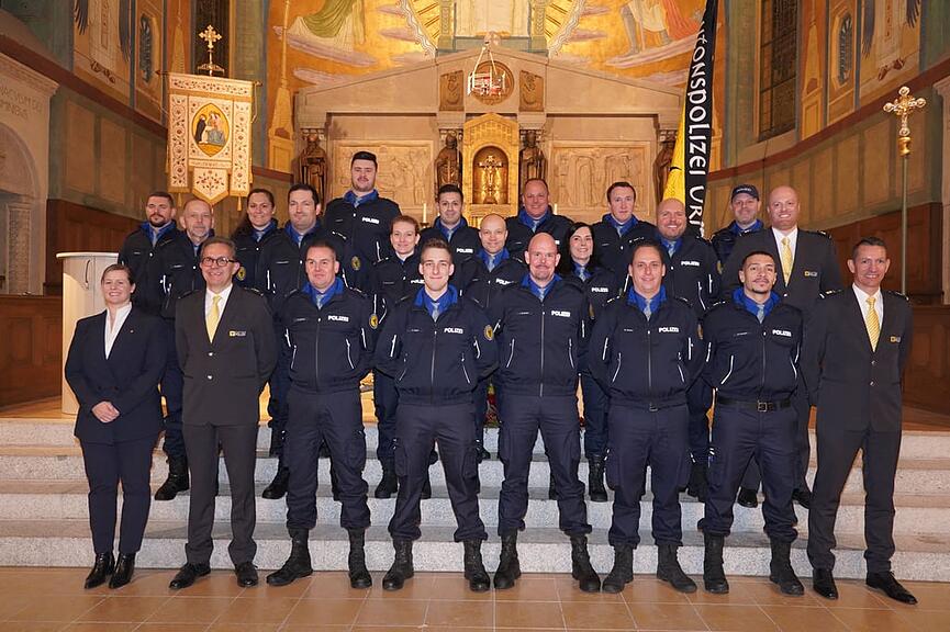 Die Kantonspolizei Uri hat am Freitagnachmittag in der Pfarrkirche Herz-Jesu in Flüelen ihre feierliche Inpflichtnahme- und Beförderungsfeier abgehalten. Acht Polizisten und eine Polizistin wurden offiziell vereidigt. Es sind dies: Leutnant Pascal Bryner, Adjutant Andreas Zimmermann, Wachtmeister Anja Aeschlimann, Polizist Daniel Ferruzzi, Polizist Claudio Hager, Polizist Jeremias Hunkeler, Polizist Pascal Russi, Polizist Sandro Scheiber und Polizist Mathias Waltert.