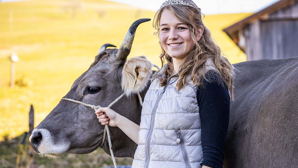 Das Navi findet die Adresse Under Münenberg der Familie Bieri nicht. Also erkundigt man sich beim Landwirt im Restaurant Rengg nach dem Weg zur Braunviehkönigin. Dieser zeigt auf einen Hof, der zwei Kilometer entfernt an einem Hang gegenüber liegt. An einer Abzweigung weist ein Poster einer jungen Frau mit Krone den Weg. Hier ist Luzia Bieri zu Hause, eine Königin im Entlebuch. Zwischen den Windrädern auf 1000 Metern Höhe ist es kühl an diesem Märztag, aber sonnig und friedlich.