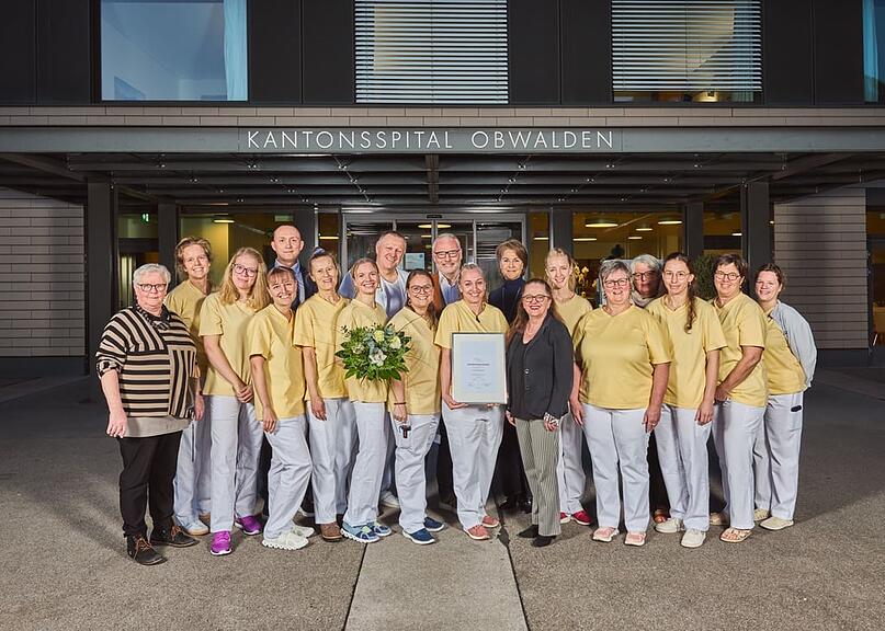 Das Kantonsspital Obwalden (KSOW) hat erneut die Re-Zertifizierung für die hebammengeleitete Geburt erhalten. Damit gehört das KSOW schweizweit zu den zwei Spitälern, die dieses Qualitätslabel bereits zum dritten Mal tragen dürfen. Das Team erreichte dabei die volle Punktzahl, heisst es in der Mitteilung des Spitals. Gleichzeitig sei das KSOW jenes Spital, mit den prozentual meisten hebammengeleiteten Geburten in der Schweiz. Die Übergabe der Urkunde erfolgte am Donnerstag durch den Schweizerischen Hebammenverband (SHV).