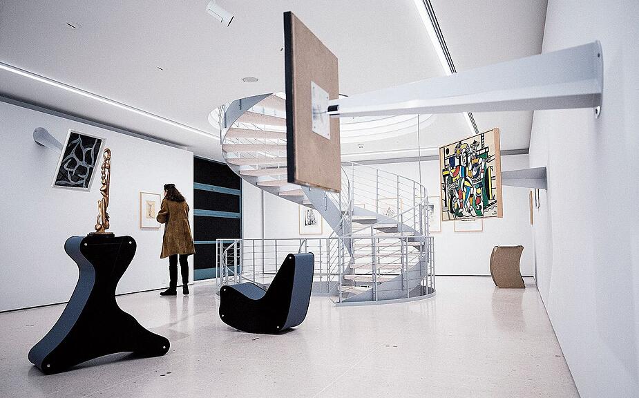 Als «Ausstellung in der Ausstellung» angepriesen, thematisiert ein ganzer Raum die geschichtsträchtige Ausstellung «Le Surréalisme» von 1947 in Paris, initiiert von André Breton, Marcel Duchamp und Friedrich Kiesler. Letzterer war als Gestalter und Mediator der Ausstellung nach Paris in die Galerie Maeght berufen worden. Der österreichisch-amerikanische Architekt und Künstler Kiesler hatte bereits fünf Jahre zuvor Peggy Guggenheims New Yorker Galerie gestaltet und im Rahmen dessen metallene Kragarme konzipiert, wie sie nun das Kunsthaus ebenfalls erstmals verwendet, was somit als eine Kiesler-Reminiszenz verstanden werden kann.