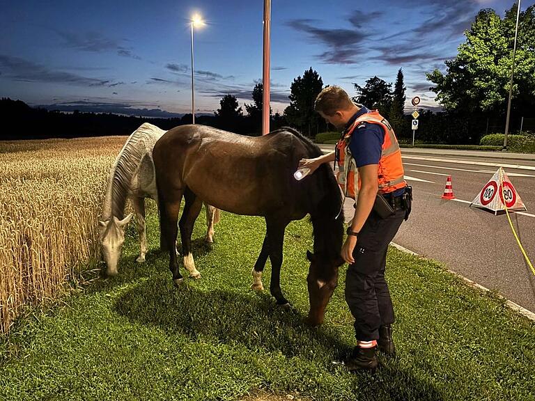 Auch zwei Pferde wollten offenbar etwas Abwechslung und erkundeten die Umgebung ausserhalb ihrer Weide. Die Patrouille fand das Duo entspannt grasend am Strassenrand.