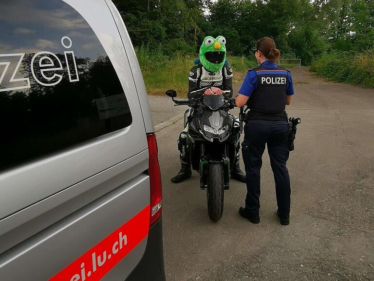 Für ein Lächeln sorgte ein Töfffhahrer, der mit einwandfreier Schutzkleidung und einem Kermit-Helmüberzug unterwegs war. «Solche Begegnungen bringen uns zum Schmunzeln – besonders, wenn alles korrekt ist», schreibt die Polizei in den Sozialen Medien.