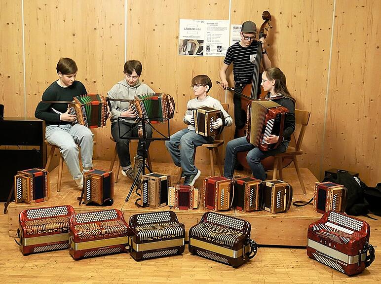 Worin besteht das erwähnte Manko? «Ich habe festgestellt, dass wir den Nachwuchs aus dem musikalischen Eigenleben befreien und in geeigneter Form zusammenbringen müssen», sagt die frühere Primarlehrerin und heutige Kauffrau Martina Spichtig. Die beiden Projektleiterinnen möchten verhindern, dass sich junge Menschen nach Jahren in der Musikschule für «Ja, das wars jetzt» entscheiden und ihr Instrument in die Ecke stellen. Offenheit und Ideenreichtum sind für das Projekt «Ländlerläbä» deshalb prägend. Dem Trend in der Volksmusik entsprechend konzentriert sich das Instrumentarium zum überwältigenden Teil auf das beliebte Schwyzerörgeli, gefolgt von Akkordeon, Klavier, Bassgeige und Harfe.
