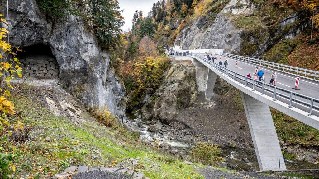 Regierungsrat und Baudirektor Fabian Peter ist beeindruckt vom zentralen Bauwerk der ersten von drei Bauetappen, welche die Verbindung zwischen Schüpfheim und Sörenberg sicherer machen: die neue Chlusbodenbrücke. «Diese Strasse, eine Lebensader, wird sich in den kommenden Jahren bewähren – für Pendelnde, für den Wirtschaftsverkehr, für die touristische Nutzung und für das tägliche Leben in der Region», sagt er am Samstag an der offiziellen Eröffnung. Mobilität sei ein zentraler Faktor für Wohlstand, die Erreichbarkeit ein wichtiger Standortfaktor für die Wirtschaft. Die Strasse wurde durchgehend auf eine Breite von 6,5 Metern erweitert.