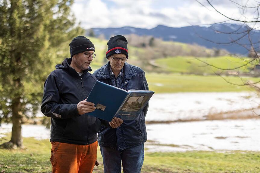 Konrad Fuchs und sein Sohn Werner auf dem Lienisberg. Ihre Vorfahren stammen aus Einsiedeln.