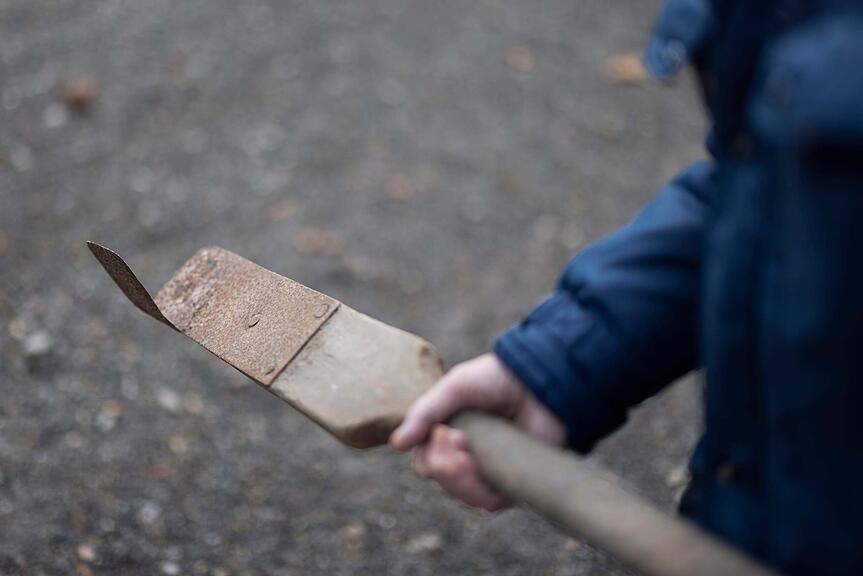Ein historisches Werkzeug zum manuellen Torfstechen.
