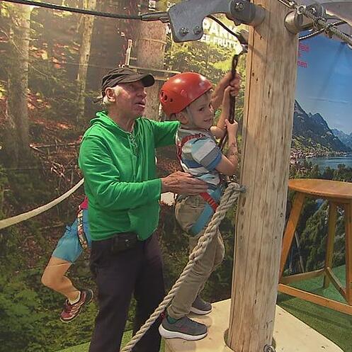 Zivilschützer führen Beeinträchtigte durch die Luga