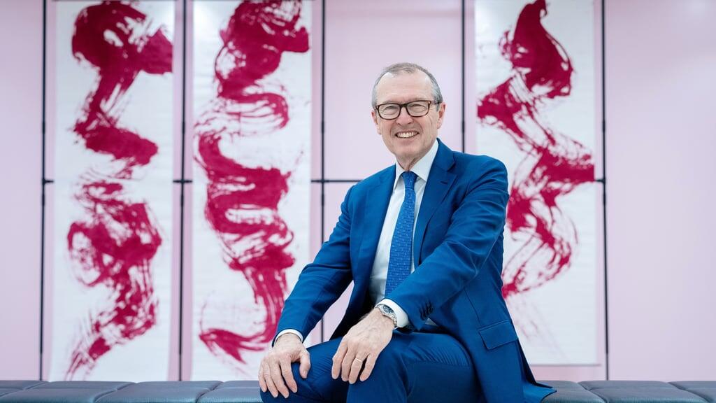 Markus Hongler vor einem Werk der Künstlerin Antonie Schnider am LUKB-Hauptsitz in Luzern.